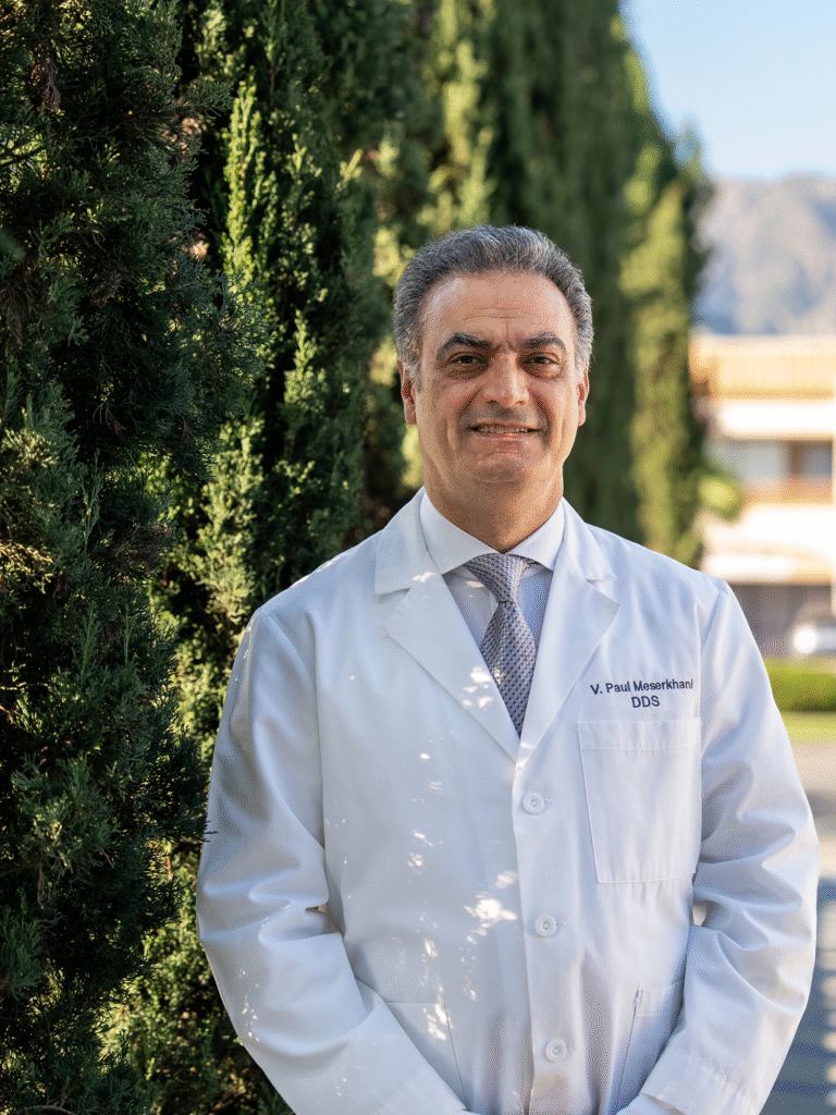 Vahik P. Meserkhani, DDS, MSD, FAAID, is an experienced prosthodontist at LA Dentists Group in Pasadena and Glendale, California. Practicing in Southern California since 1991, he specializes in prosthodontics, implant dentistry, and full-mouth smile restorations. A Diplomate of the American Board of Oral Implantology, Dr. Meserkhani has appeared on Fox TV, published in leading dental journals, and lectures nationally and internationally.